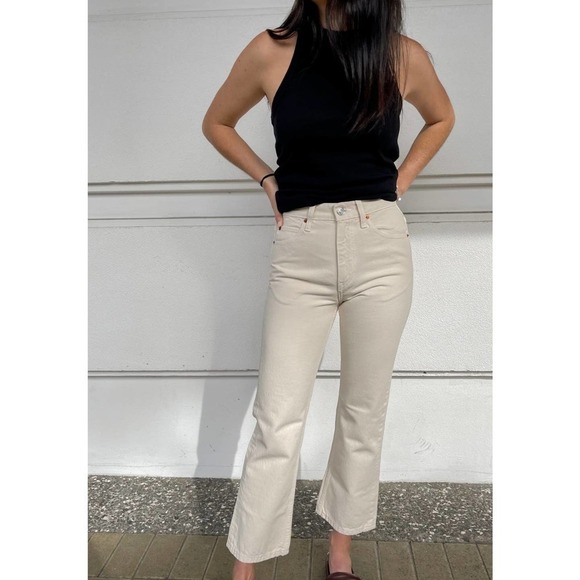Re/done 70s Crop Boot $250 High Rise Jeans Vintage White Size 32 NWT