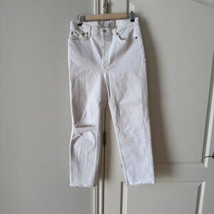 Re/done 70s Distressed High-Rise Ankle Crop Jeans in White Size 30