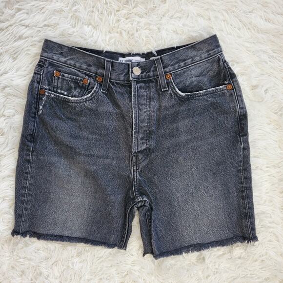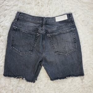 A modern revival of vintage denim, these jorts bring an effortlessly cool edge to your winter wardrobe. Crafted from cotton with a structured, high-rise fit, they feature light fading, whiskering, and intentional distressing for that perfectly lived-in feel. The Bermuda silhouette adds a sleek, retro touch. Perfect for pairing with tights, boots, and oversized sweaters for an elevated seasonal look.