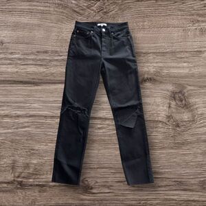 Redone Re/Done Jeans 90s High Rise Ankle Crop Ripped Jet Black with Rips 26”