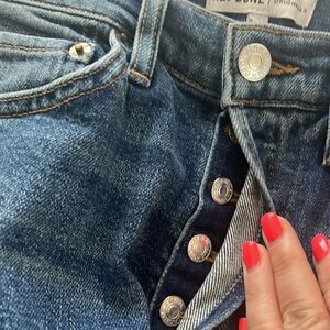 Brand new, and never worn jeans. These jeans are button up, fly with two pockets in the front along with a small coin pocket and to pockets in the rear. These jeans do have stretch to them this company offers repairs for life if your jean rips or tears, just send it to them and they will patch it up for you at no charge!