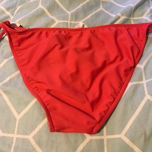 Red/pink bikini set with beads on the bottom's strings and cute brown tile detail lining to top front and the brown tiles on the bikini top as well. Has removable padding in the cups. Feel free to make an offer! Open to trades