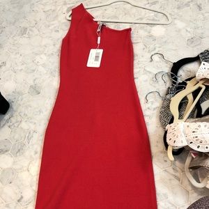 Red/pink midi tight autumn cashmere dress