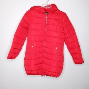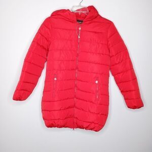 Red puffer coat with hoodie