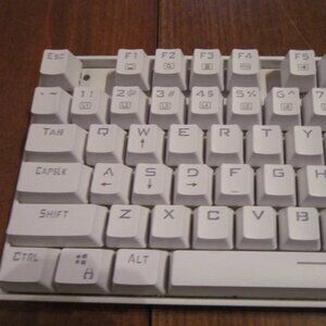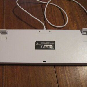 This Redragon mechanical keyboard was designed with gamers in mind, but we use it for normal keyboard tasks. Model K552-WR, this is white plastic and has a rainbow LED backlighting option that can be turned up, down, or off entirely.
