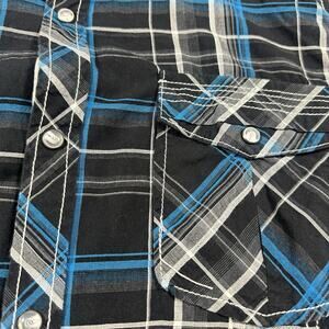Redsnap Clothing Shirt Mens Large Black/Blue Pearl Snap Western Cowboy