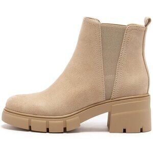 ✨ Redtop Ankle Boots Women Cream Faux Suede Elastic Chunky Heel Lug Sole Boots