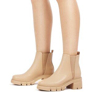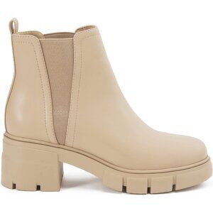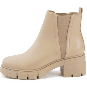 Redtop Women's Nude Faux Leather Elastic Chunky Block Heel Lug Sole Ankle Boot