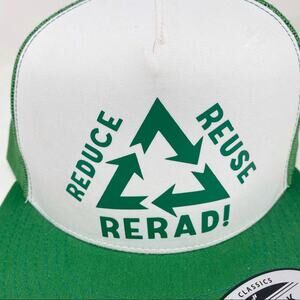 Reduce Reuse Rerad green & white novelty trucker snap back hat one size NWOT