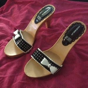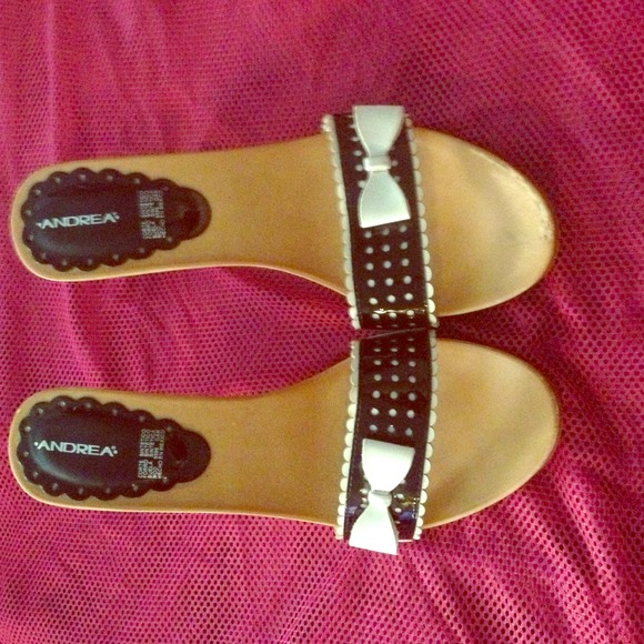 Cute shoes from Andrea with polka dots and white bows. I've never wore them they've just been in my closet but since I did not have them in a box they have a little bit of wear. You can see it on the edge of one of the shoes.