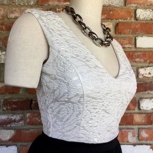 CANDIE'S sleeveless dress for party, dance or prom. Features v-neck front and back, top has a shimmer, swirl pattern. Measurements: Length 33". Chest 17" flat, pit to pit, stretches to 19". Waist 13" flat, stretches to 15". Excellent like new condition, worn only once. No damage or stains.