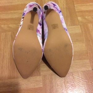 These have a beautiful flower print. I've never worn them, only around the house because they are way too high and too big. The heel measures 5 inches. Asos has weird numbers for shoes, it says these are a UK size 5, but these definitely feel like a 7, they fit my mom. Ladies with thin, long, size 7 feet come get em lol.
