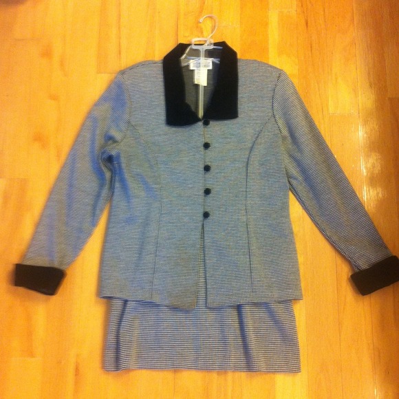 Women's black and white mini check suit - includes jacket with black velvety color, cuffs and buttons and pencil skirt - worn twice
