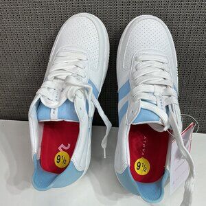 Redvanly Women's Size 9.5 White & Blue Vegan Leather Sneakers
