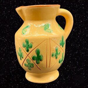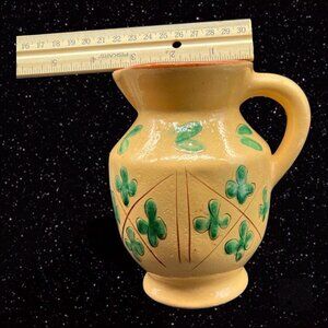 Redware Pottery Pitcher Vase with Shamrock Hand Painted 6”T 3.5”W.
