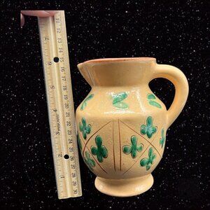Redware Pottery Pitcher Vase with Shamrock Hand Painted 6”T 3.5”W