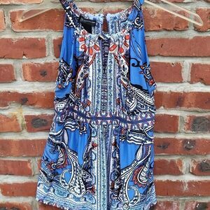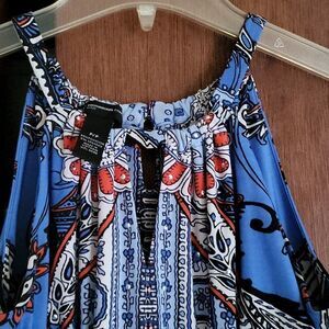 Halter top with sparkle embellishments- paisley patter. rear button closure