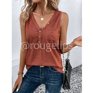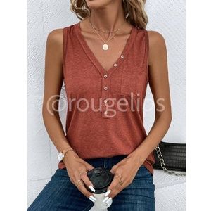 Redwood Casual Tank Top V-Neck Button Up Chest Pocket