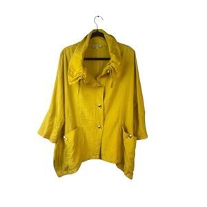 Embrace the fusion of classic and contemporary with the Redwood Court Silk Bamboo Lightweight Jacket. Tailored for women's size medium, this piece is a versatile addition to any wardrobe, featuring a striking yellow marigold hue that adds a pop of color to your ensemble. Its kimono sleeves and asymmetric design offer a relaxed yet sophisticated silhouette, perfect for a range of occasions from business to casual, and even for special events. The jacket boasts an array of features including a smart collared neckline, convenient pockets, and an ornate toggle button accent that adds a touch of bohemian flair. Crafted from a luxurious blend of silk and rayon, this garment promises both comfort and durability. Whether you're traveling, attending a wedding, or enjoying a night out, this Redwood Court creation is designed to elevate your style with its unique blend of city-chic and classic artistry.