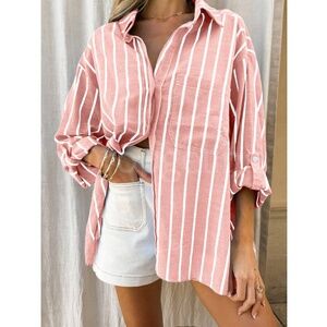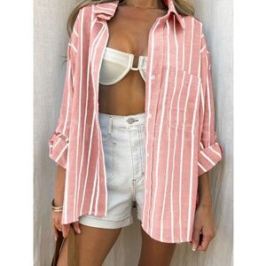 Redwood Pink Shirt White Stripes Button Down Long Sleeve