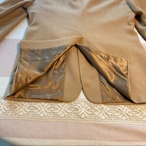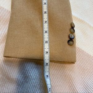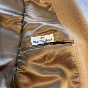 Redwood and Ross 100% Camel Hair Jacket. Excellent used condition. No size tags, please go by measurements. 2 button front closure. 2 inside pockets. Satin lining. Split bottom back. 2 front pockets sewn closed. 1 breast pocket. Measures chest 45”, length 31”, sleeve 24.5”, shoulder 19.5”.