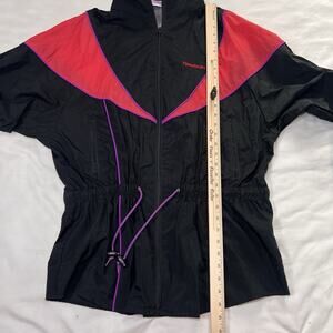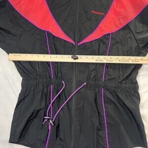 Reebock Tracksuit Womens Size XL Black Pink Hidden Hood Jacket Pants Set VTG 90s.