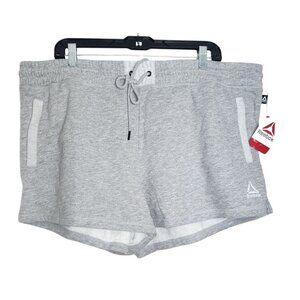 Reebok 2015 Limited Grey Heather XXXL Relaxed Shorts: breathable polyester/cotton blend, relaxed fit with elastic waist and drawstring, size XXXL (waist 44-46 in, inseam 10 in, tolerance 1 in), moisture-wicking for workouts, perfect vintage athletic shorts for gym, running, or casual wear, ideal gift for fitness enthusiasts. Machine wash cold, tumble dry low.
