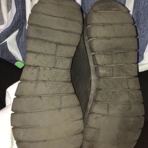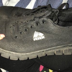 Men’s sneakers size 9.5 All black Worn (as shown in picture) Still in good condition otherwise Price negotiable