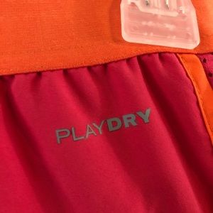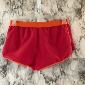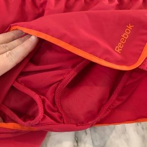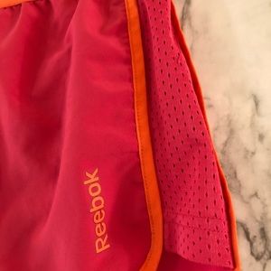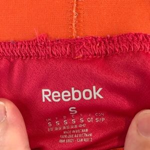 Reebok athletic shorts size S pink/orange built in panty liner slight pulling at waist on the upper left hand side (as shown in pictures)