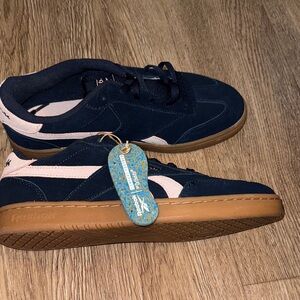 Stylish Reebok sneakers in dark blue. Features pale pink accents. Ideal for everyday wear.