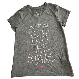 🌴 Reebok AIM FOR THE STARS DriFit T-Shirt Girls S(8-10) Grey