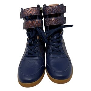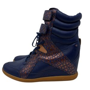 Alicia Keys x Reebok Classic Leather High Top Wedge Sneakers Blue Bronze Size 9