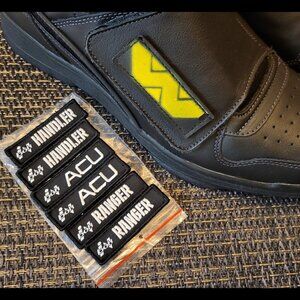 Brand new in the box, Reebok Alien Stomper Jurrasic Park edition with custom made Weyland Yutani velcro badges. Original badges will be included. I have 2 pairs of these with custom badges so this is 1 of 2. Time to thin out my collection since I have too many pairs of shoes I'll never wear.