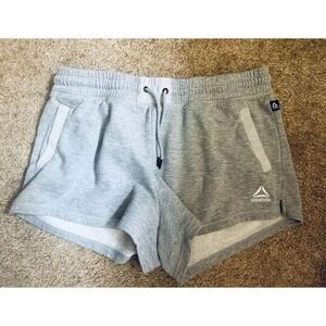 Keywords: reebok shorts, athletic shorts, workout shorts, grey shorts, drawstring shorts, cotton shorts, gym shorts, casual shorts, loungewear, activewear, exercise clothing, fitness wear
