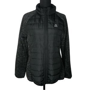 Reebok Black & Black Heather Fleece Women’s Puffer Jacket - Size Medium * wom106