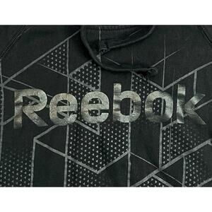 Reebok Black Geometric Hoodie Mens Size Medium Pullover Sweatshirt Athletic Wear