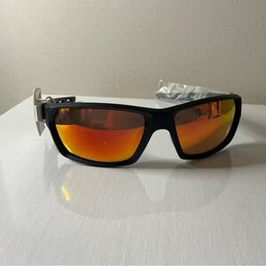 Stylish Reebok sunglasses. Black frame with vibrant orange lenses. Perfect for outdoor activities.