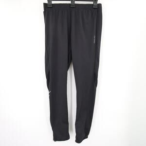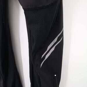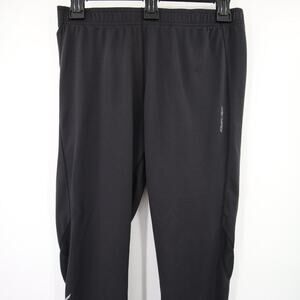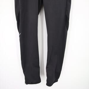 Upgrade your athletic wear with these Reebok Black Track Pants. Designed for comfort and style, these pants feature a classic black color and a relaxed fit. However, please note that there is some cracking on the reflective material, as shown in the photos. They are perfect for workouts or casual wear, adding a sporty edge to your outfit.