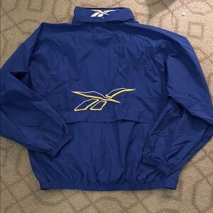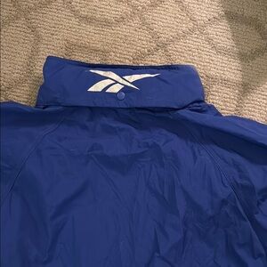 Stylish blue windbreaker jacket by Reebok. Perfect for casual wear.