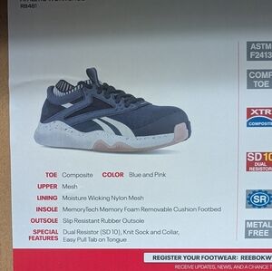 Reebok blue pink and white HIIT TR safety composite toe athletic work sneakers