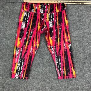 Reebok Capri Leggings Womens Size M Multicolor Abstract Print Stretch Activewear