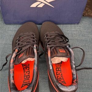 Dynamic Reebok shoes in charcoal and crimson. Ideal for active lifestyles. Never wear. New in box