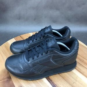 Reebok Classic Harman Running Sneakers Womens Sz 7 Triple Black Leather Lace Up