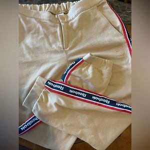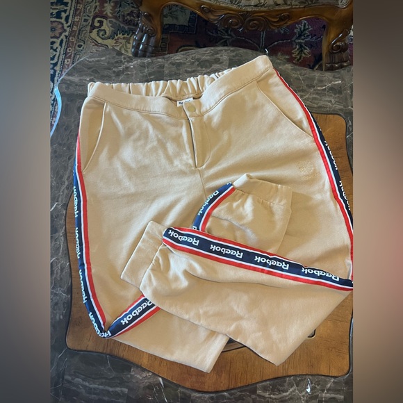Reebok Classic VTG Spellout Pants Sweats SZ(M) Adult Tan Snap Zip