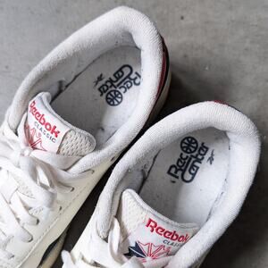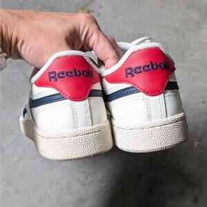 Stylish Reebok athletic shoes. White with navy and red accents. Comfortable and durable design.