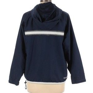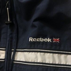 Reebok Classic Women's Large Full Zip Windbreaker Hooded Jacket Navy