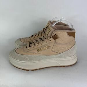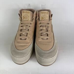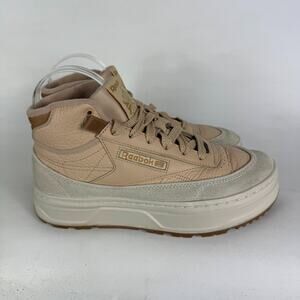 Reebok Club C Geo Platform Sneakers Womens 8 Weathered Beige Leather Lace-Up