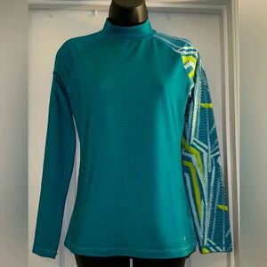 NWOTs Reebok Cold Compression Green Long Sleeve Abstract Print Shirt 86% polyester 14 spandex 1579