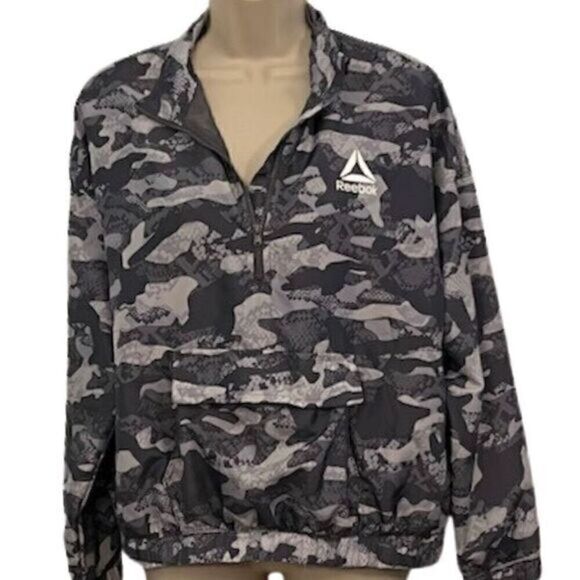 Reebok Dark and light gray camo. Lightweight. Front pocket. Size Small