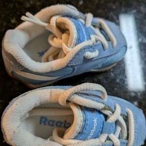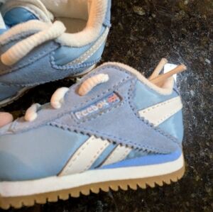 Reebok Sz 2 baby Blue Fiori style Laces Leather suede In excellent condition